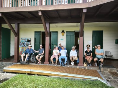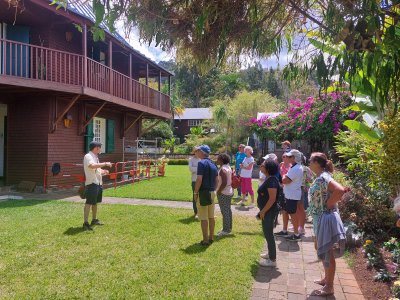 | 16 atscafiens se sont retrouvés le samedi 8 Novembre pour cette balade conférence, animée par Nicolas Barniche, guide conférencier et descendant de la famille de Chateauvieux, cette visite a permis la transmission de l'histoire de cet ancien domaine agricole et cannier, créé au XIXème et géré par la famille de Chateauvieux jusqu'en 1986 puis devenu Mascarin jardin botanique de La Réunion, au coeur du quartier de Colimaçons. Très bonne matinée appréciée de tous et qui s'est achevée par un repas au restaurant le vieux pressoir sur le site même du jardin botanique. | |