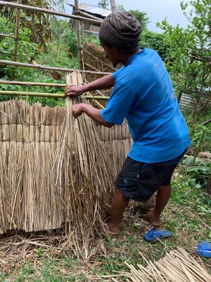 ... Explications et démonstration du couvrage d'un toit en vétiver, une tradition réunionnaise ancestrale, explications sur la culture des plantes aromatiques, dégustation des Tisanes "La Kour" et déjeuner Créole Traditionnel au feu de bois (entrée fleurie, carry coq, riz, maïs, grains, brèdes, rougail, dessert patate douce) . Un très bon moment de convivialité et d'authenticité : tout le monde est reparti avec sa bouture , ravi de la journée ! |