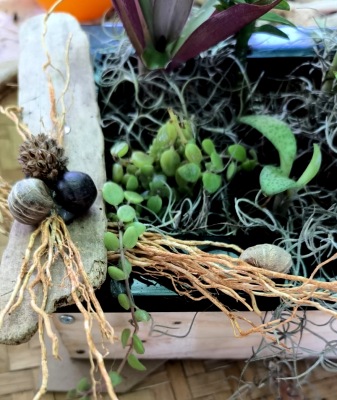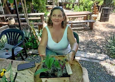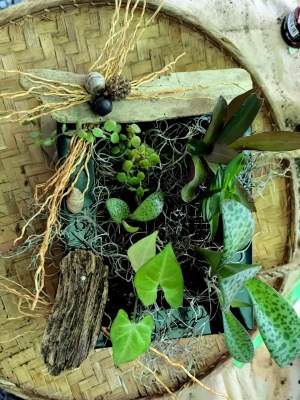 | Ce samedi, 11 atscafiens se sont retrouvés à Saint André pour participer à un atelier kokédama (art floral japonais qui utilise des sphères de mousse sur lesquelles s'épanouissent des plantes) . Accueil très chaleureux de notre animatrice Corinne Techer : café, thé, eau fraiche, jus de fruits accompagné de petits gâteaux. Visite de l'immense jardin qui a enchanté tous les participants. Visite de la case Floria2. Puis atelier et chacun s'est investi pour réaliser ses propres kokedama avec l'aide précieuse de Corinne. S'en est suivi un excellent repas préparé par J-Bernard, l'homme de la case, terminé par un gâteau tison maison du tonnerre ... tout le monde est reparti ravi... | |