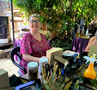 | Ce samedi 2 août 2025, nous sommes 7 atscafiens reçu par Mira et son papa pour une journée instance d'initiation à la poterie... Tournage, barbotine, colombin, etc... Plein de nouveaux termes et méthodes pour la création de 3 pièces par participant. 7 élèves appliqués à la personnalisation de leurs créations !A midi, partage d'un repas avec nos hôtes à l'auberge espagnole. | |