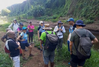 | Ce dimanche 14 atscafiens étaient réunis autour de Clovis (guide de l'office de tourisme de l'ouest) pour la visite des bassins cachés de Saint Paul. Tout le monde s'est rejoint à 8 heures au parking de St Paul face à la maison Cerveaux et nous voilà embarqués pour une découverte botanique culturelle et touristique !!! Plus particulièrement le bassin Pigeon de la ravine du Bernica (qui fut source d'inspiration pour le poète Leconte De Lisle) puis la poudrière, le lavoir et enfin le bassin long de la ravine Divon. La matinée s'est clôturée vers 11h30 avec une collation. | |