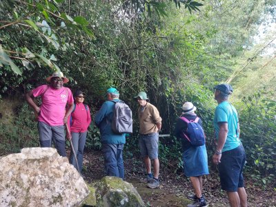 | Ce dimanche 14 atscafiens étaient réunis autour de Clovis (guide de l'office de tourisme de l'ouest) pour la visite des bassins cachés de Saint Paul. Tout le monde s'est rejoint à 8 heures chemin Ravine Bernica à Saint-Paul pour une découverte botanique culturelle et touristique !!! Plus particulièrement le bassin Pigeon de la ravine du Bernica (qui fut source d'inspiration pour le poète Leconte De Lisle) puis la poudrière, le lavoir et enfin le bassin long de la ravine Divon. La matinée s'est clôturée vers 11h30 avec une collation. | |