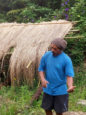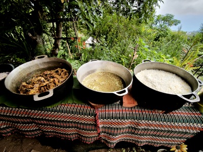 ... Explications et démonstration du couvrage d'un toit en vétiver, une tradition réunionnaise ancestrale, explications sur la culture des plantes aromatiques, dégustation des Tisanes "La Kour" et déjeuner Créole Traditionnel au feu de bois (entrée fleurie, carry coq, riz, maïs, grains, brèdes, rougail, dessert patate douce) . Un très bon moment de convivialité et d'authenticité : tout le monde est reparti avec sa bouture , ravi de la journée ! (18 janvier 3 personnes) |