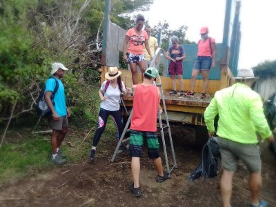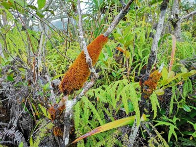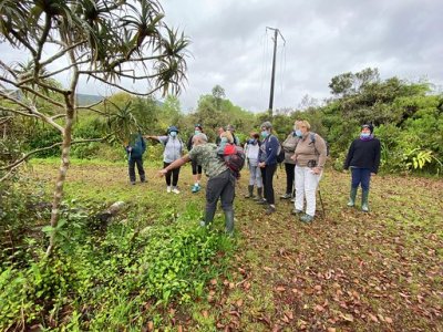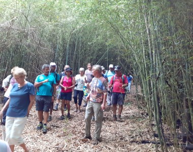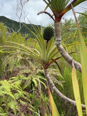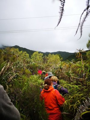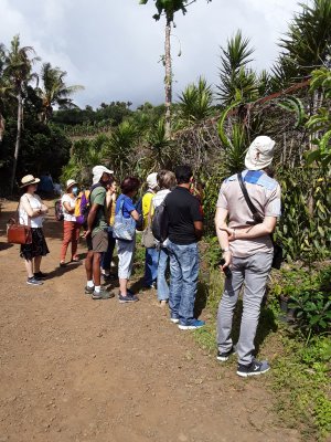 | 3ème visite de la pandanaie de la Plaine des Palmistes : 9 atscafiens accompagnès de Didier Cologni guide accompagnateur de montagne et Jean-Maurice Tamon botaniste palmiplainois passionné et passionnant sur la flore autochtone ! Pandanus certes, mais aussi fougères et orchidées pendant 2 heures avant de découvrir le jardin de J-Maurice et de finir la matinée à la ferme auberge de la cascade biberon. | ||