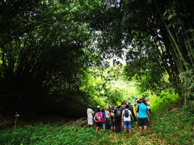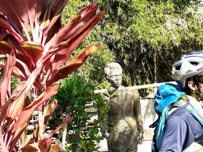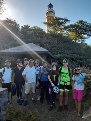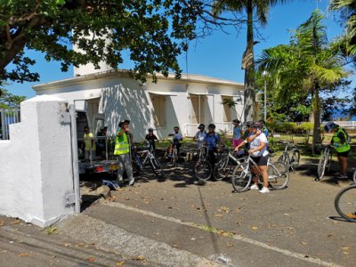 accompagnateur. La ville de Ste-Suzanne se dévoile à ceux qui savent prendre leur temps. cette boucle de 10 kilomètres à vélo au rythme familial nous a ’immergés dans le territoire du Beau Pays (le phare, la cascade Niagara, l'histoire d'Edmond Albius, l'ancien chhemin de fer, le domaine du Grand Hazier ...) Un groupe de 9 le samedi et 2 groupes de 8 et 9 le dimanche qui ont bien apprécié leur sortie. |