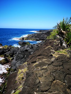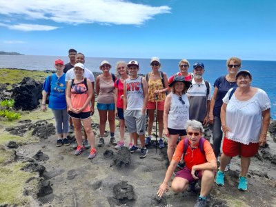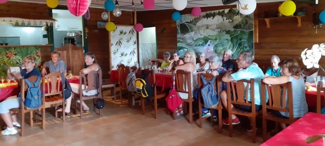 | Petite promenade (sous la houlette de Chantal) d'environ 45 mn sur le site de Cap Jaune à Vincendo. 16 personnes en 3 groupes de même que 3 tablées pour le restaurant à St Joseph ! | ||