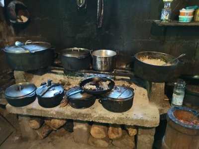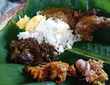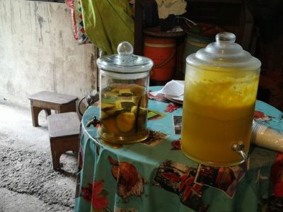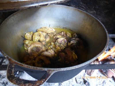 encore ravage (pommes en l'air et cambar au sirop de sucre)... Pour faire digérer tout ça course à la roue, course en sac goni et tir à la corde ! Fin de la journée récréative vers 16 heures après salade de mangues et un tirage de loterie offrant un panier garni et un canard vivant . |
