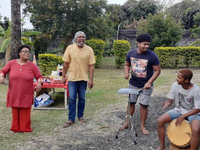 origines géographiques ! Et nous nous sommes retrouvés une demi-heure plus tard à la "ferme du bel air" chez M et Mme Giglio à Bois de nèfles saint Paul autour d'un bon repas animé en musique par deux des dames de la maison ! |