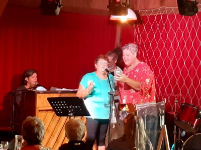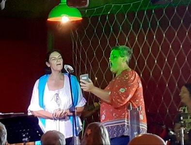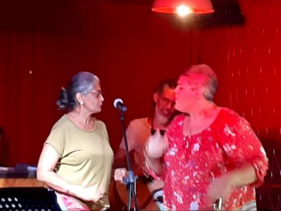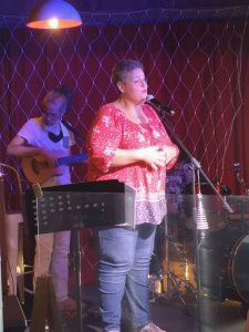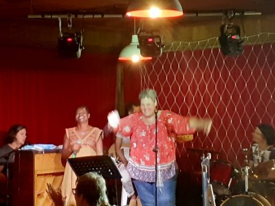 | Matinée cabaret dans les hauts de Saint Leu au Marg'oz belle animation par la chanteuse Nicole Dambreville Bon moment de partage autour des chansons de Piaf mais aussi du répertoire créole : un bon moment de convivialité et de bonne humeur ou certaines atscafiennes ont poussé aussi la chansonnette ! | ||