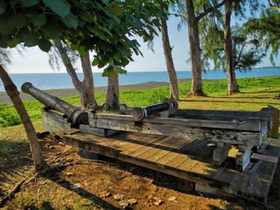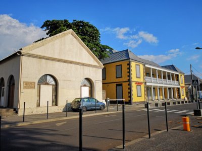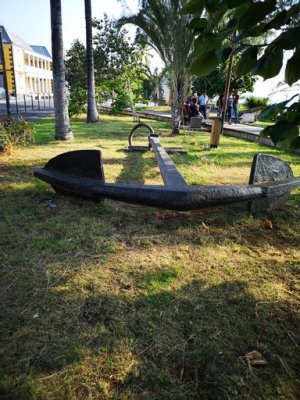 | La ville de Saint-Paul est née de la mer. La baie offre un point d’ancrage sécurisé à l’abri du temps capricieux. Un espace portuaire et commercial s’est donc développé face aux nombreux débarcadères, et ce jusqu’au début du XXe siècle. M. Pitveau guide conférencier commence donc la visite devant l'hôtel de ville dont la fonction initiale était un entrepôt de marchandises avant de nous diriger vers l'embarcadère et le front de mer y découvrir un canon ou une ancre de marine ... ou même un ancien hôtel du XIX° restauré récemment ! | ||