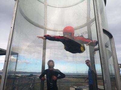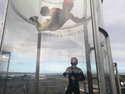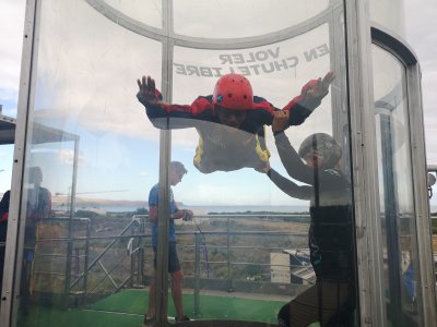| 11 Atscafiens ont découvert les joies de la chute libre à Cambaie Saint Paul. Le simulateur leur a permis de connaître les sensations de la chute libre à l'identique d'un saut en parachute sans les contraintes ! | ||
