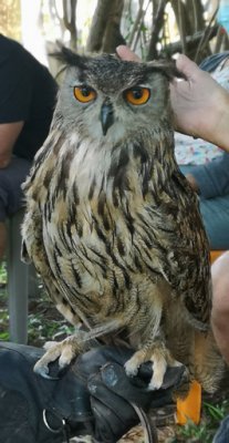 | Dimanche 20 juin 2021, à d'étang-salé près de Croc parc les atscafiens ont assisté à des démonstrations de vols de divers rapaces ( buses, chouettes, faucons, aigles ... ) sous la houlette de Bernard Gougache, maître fauconnier qui s'installe actuellement sur ce nouveauparc animalier . | ||