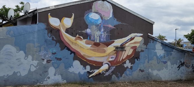 la ville du Port ! Belle matinée en compagnie de Mathieu le guide de l'office du tourisme de L'ouest ! (3 atscafiens) Et le samedi 11 décembre, 4 autres personnes ont pu admirer le street-art au Port ! |