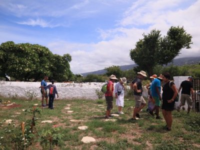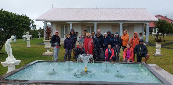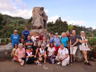| Samedi 22 avril, visite guidée "le Tévelave et l'âme des hauts" groupe de 20 personnes encadrées par Mathieu Pitou guide conférencier originaire du village. Le Tévelave est la patrie de Thérésien Cadet, botaniste réputé. (dont la statue constitue l'arrière plan de la photo de groupe). Au cours de notre déambulation deux habitants passionnés nous ont ouvert un son jardin à l'italienne et l'autre sa maison hors norme. La visite a été suivie d'un excellent repas avec produits de la"cour".. Les atscafiens ont bien apprécié la sortie qui devrait être reprogrammée prochainement. | |