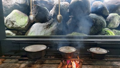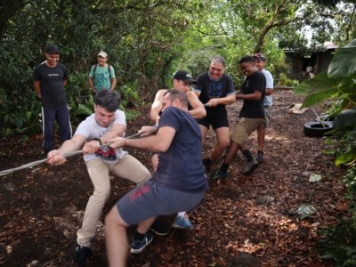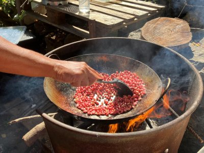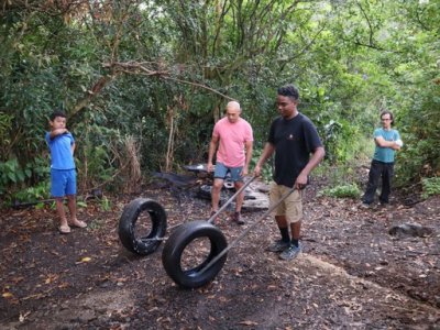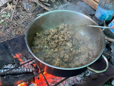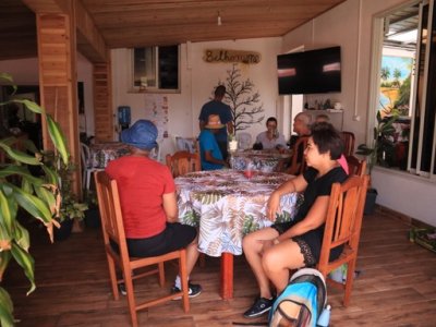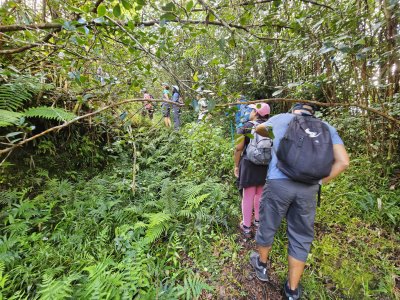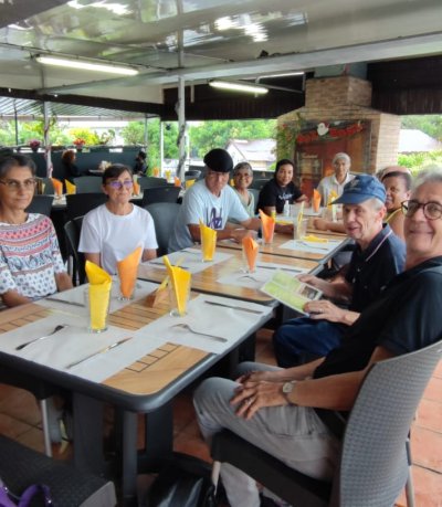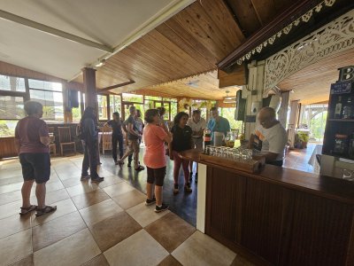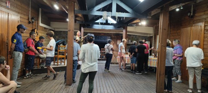 | Samedi 13 mai, Prévu pour 18 personnes au départ, nous ne nous sommes retrouvés qu'à 10 personnes le jour "J". Malheureusement il y a des désistements, pour diverses raisons (COVID,blessures...). Le rdv était donné pour 9h00 chez Mr Morel. Après le riz chauffé et café, nous avons fait le parcours pédagogique dans la forêt Ste Marguerite. A 12h00 nous étions de retour à la table d'hôte, pour l'apéro créole (boudin, beignets manioc frit, jus frais...). Comme d'habitude le repas fut copieux (carri coq, ti jacques canard fumé, gâteau patate, tisane et café. Après les jeux lontans, nous avons terminé la journée par le "ravage", avant le retour à la case.Ce fut une belle journée, malgré quelques ondées. | |