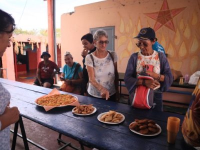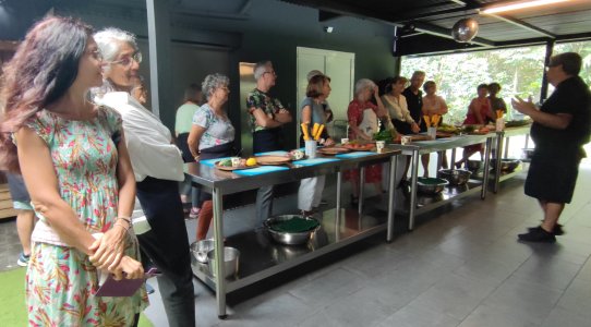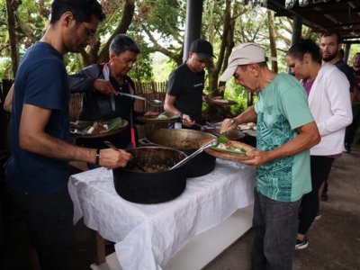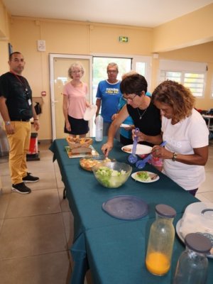 | Ce samedi 25 Novembre, nous étions un groupe de 16 personnes à nous rendre à la Sirandane, chemin de l'abondance à St Benoît pour participer à un atelier de cuisine créole (samoussas, bonbons piment, carry camarons, carry canard aux olives, gâteau tisson ...) | |
