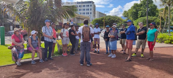 | Samedi 22 Février 2023, visite culturelle de St Denis avec le guide Roméo Egippa, 20 atscafiens se sont retrouvés aux canons du Barachois à 9 heures. Visite guidée de la ville autour de l’histoire de La Réunion et de Saint-Denis, des monuments historiques et autres patrimoines de Saint-Denis, des grands personnages de l’histoire ... Durée 3 heures passionnantes avec un guide passionné ! | |