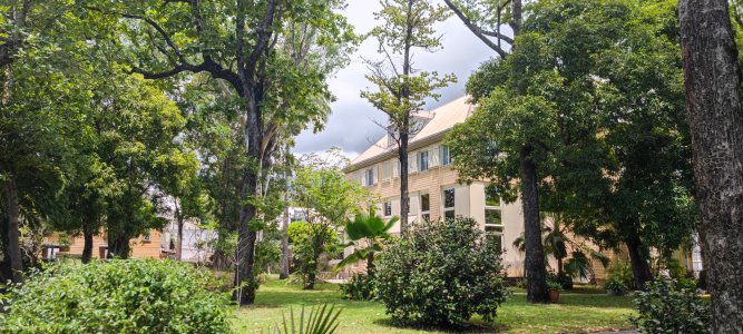 | Samedi 11 mars, 18 personnes se sont retrouvées à 9H00 devant l'ancien hôtel de ville de St-Denis avec le guide Roméo EGIPPA. Après une visite des salon d'honneur et de la salle des mariages de l'hôtel de ville, nous avons monté la rue de Paris où Roméo nous a conté les grandes et petites histoires des différentes villas créoles bordant cette rue. La séance s'est achevée vers midi dans les jardins de l'évêché sous un soleil de plomb. Les exposés de notre guide ont été très appréciés de l'ensemble des participants. | |