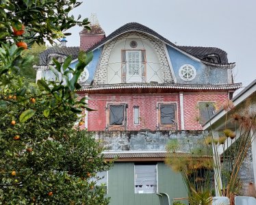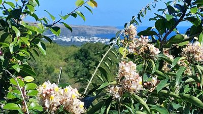 | Samedi 22 juillet, nous nous sommes retrouvés 20 atscafiens à 9 heures dans les hauteurs du Tévelave (altitude 900 m) pour une petite visite du village guidée par Mathieu Pitou : l'histoire du village , la botanique (l'ambaville, le bois rouge ou l'arbre ortie notamment) et bien sûr Thérésien Cadet botaniste né au Tévelave ... mais aussi la visite d'un jardin "à l'italienne" de M. Payet et d'une maison "originale " dont le propriiétaire M. Isidore Deveaux ne vivra sans doute pas assez longtemps pour la terminer ! | |