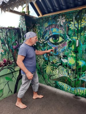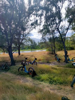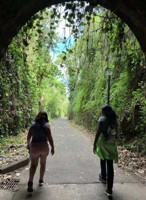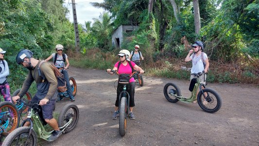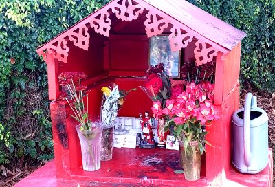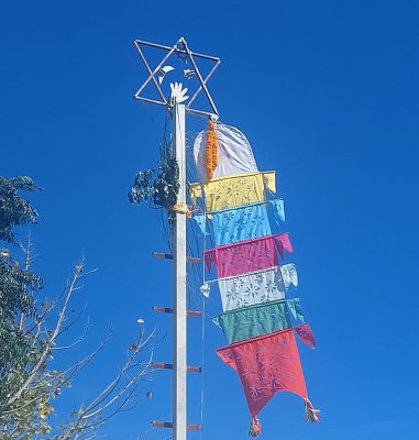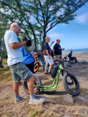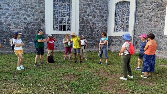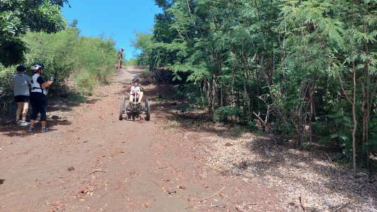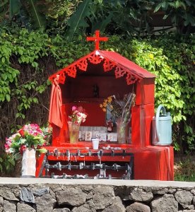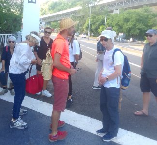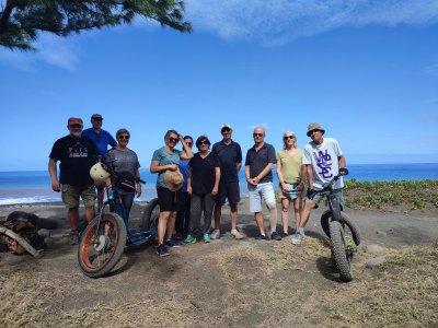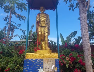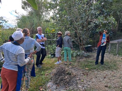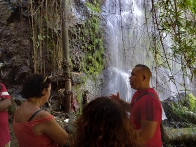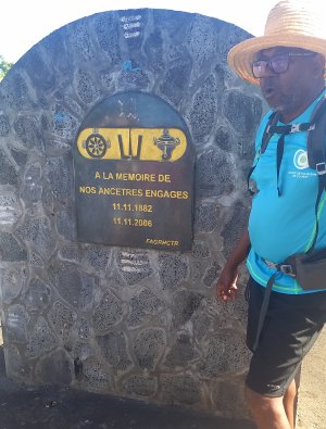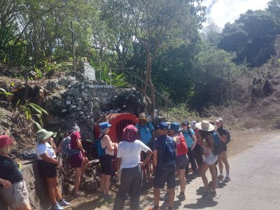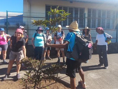 | Le samedi 15 décembre, 10 atscafiens ont retrouvé Clovis le guide de l'office du tourisme de l'Ouest pour une promenade commentée dans les hauts de l'Ouest : Rendez-vous à 7H00 à l'association Kaz Maron à la Saline les Hauts, puis après un riz chauffé direction l'ancienne usine de Vue Belle (explications sur l'engagisme indien au XIX° siècle) . Puis retour pour rejoindre Villèle et moulin kader (moulin à carder le choca) . En chemin quelques explications sur le drapeau d'un temple "malbar" : Nargoulan ou Nagourmira, est une divinité présente dans beaucoup de chapelles malbars, le Nargoulan est symbolisé par un mât du tamoul « marlon » au sommet duquel est fixée une main tendue vers le ciel. Nargoulan est souvent considéré comme une divinité d'origine musulmane ayant un statut d'hôte dans certaines chapelles malbars. ... Nous nous sommes aussi arrêté devant la chapelle la misère .... Repas vers 13h30 toujours à Kaz marron suivi de la visite du jardin partagé. Un très bon dimanche, ma foi ! | |