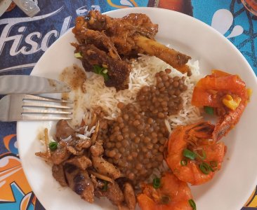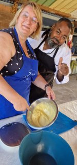 condiment (piment géranium, moutarde géranium …) , les beignets de légumes , le plat principal et enfin le gâteau péi parfumé au géranium rosat. Belle journée ensoleillée et fraîche avec une excellente ambiance et un accueil au top, beau domaine bien entretenu avec un passionné de cuisine qui nous a permis de nous rassasier dans une bonne humeur constante ! |
