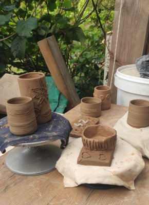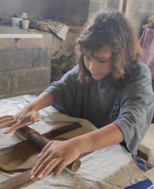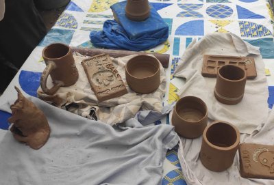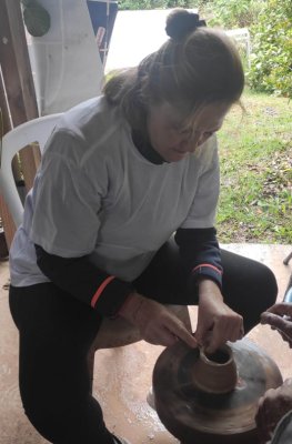 | Le samedi 23 novembre, dix Personnes se sont retrouvées à la plaine des Cafres dans la fraîcheur des hauts, dans l'atelier de la potière Mira Ceramik Art. Après la présentation des matériaux, outillage et techniques possibles, nous avons été initiés à trois techniques différentes du travail de l'argile. Et nous avons pu réaliser et décorer trois oeuvres. Celles ci nous serons remisent dans quelques semaines après séchage, cuisson et émaillage. | |
