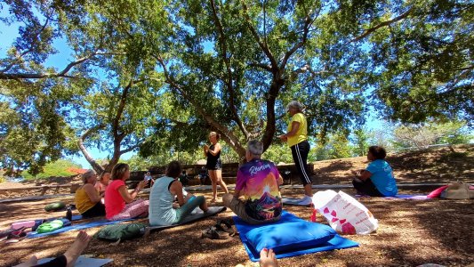 | Le mercredi 18 décembre, 10 atscafiens se sont retrouvées de 9h30 à 11h30 dans le parc près de la médiathèque de St Denis ... Sandra Borrego a partagé quelques techniques d'auto-massage avec les participants qui paraissent bien enclins à renouveler l'opération ! | |