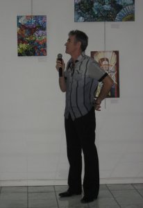 Eric Guignet remercie l'OMS et invite les peintres à le rejoindre pour la photo! |