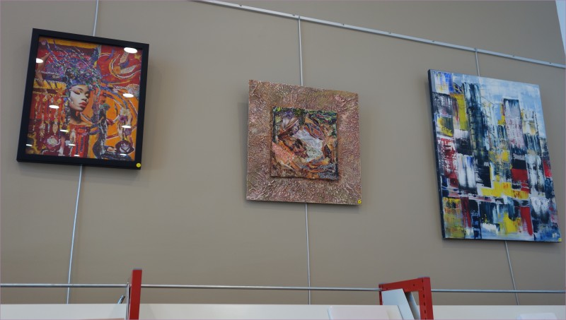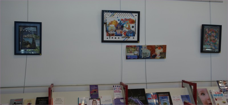 | La Bibliothèque Alain Lorraine accueille l'exposition Atscaf du 15 décembre 2017 au 30 janvier 2018 consacrée principalement aux tableaux de collages initiés par Lucienne... L'autre nouvelle exposante (peinture à l'huile) est Dominique Ducros ... Uniquement 16 tableaux mais une très belle exposition sur des murs tout fraichement repeints. | |