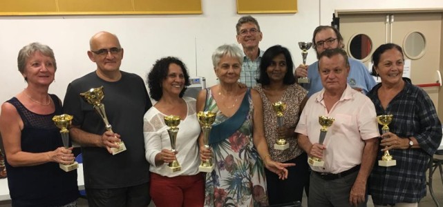 le vendredi 15 novembre à l'Ile Maurice. Bravo Gérard HUSS de l'Atscaf qui gagne cet Open (et l'immense coupe qui va avec:-)), il récupère ainsi son titre de Champion des Mascareignes acquis en 2011 lors de la première version de cet Open. et Eve Baquer atscafienne elle aussi se classe seconde ! |