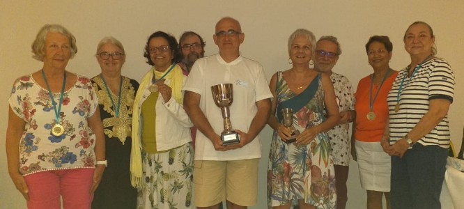 | L'ATSCAF a participé au championnat de la Réunion les 1 et 2 juillet 2017. Les nouveaux Champions de la Réunion sont: - en paire: Ishbel et Jean-Luc Champenois - en individuel: France-Line Néocles. En paires les atscafiens se sont classés 5, 6 ,11, 23 et 24 sur 24 paires et en individuel Gérard Huss 2ème (et 1er serie 1), Jacqueline Vilpont 5ème (et 1ère série 2), Sophie Denemont 36ème et 1ère série 6 ... et Christane Béhary 10ème etc. sur 48 joueurs . |