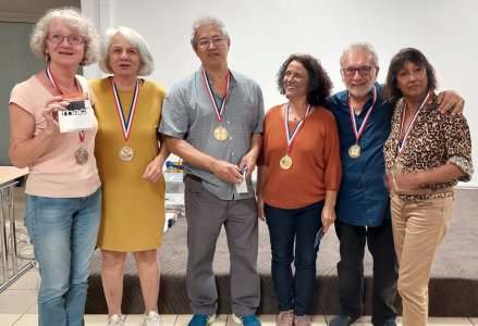 atscafiens dans les 12 premiers : 1er Gérard, 6ème Bernadette (1ère en série 3), 10ème Jacqueline,12ème Christiane et 21ème Eric sur 49 joueurs. |