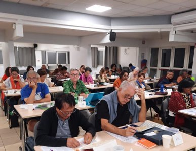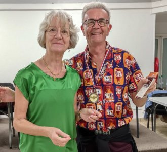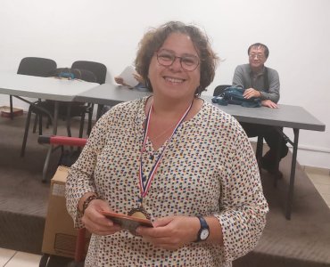| Ce week-end des 02 et 03 novembre 35 joueurs ont participé au tournoi d'aix les bains (multiplex 5 parties) 2 atscafiens : Jacqueline Vilpont se classe 4ème et remporte la coupe des deuxièmes séries, Eric Guignet est très loin ... Bernadette Ollivier était à l'arbitrage et Françoise Gosset a participé au ramassage des tickets le dimanche ! (crédit photos Barbara Law-Koune) | |