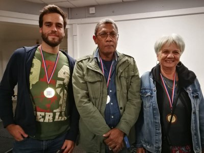 | Jean-Luc Champenois Président du club de scrabble de Saint Paul, Suzelle Boucher. Adjointe au maire de Saint-Paul, déléguée aux affaires culturelles et le podium : Eve Baquer, Olivier Guillaume et Jacqueline Vilpont. | |