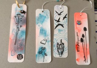La journée s'est bien passée (4 scrappeuses) et nous avons été productives . Après avoir terminer nos classeurs de rangement pour matrices de découpe., Sophie a experimenté la gel press ronde avec des encres. Voici quelques photos de la séance du 31 janvier. |