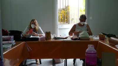 | 6 scrappeuses au rendez-vous ... A l'ouvrage dès leur arrivée et jusquà 17h. Les gestes barrières ont été respectés sans rechigner et elles ont passé une très bonne journée de détente ! | ||