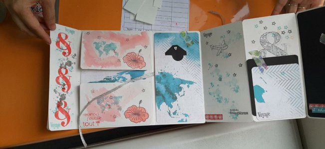 8 astcafiennes se sont retrouvées pour leur atelier mensuel de scrapbooking. A programme, le projet proposé par une adhérente, la réalisation d'une carte s'ouvrant a l'infini. |