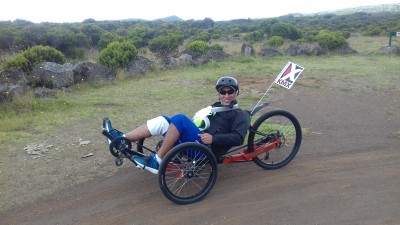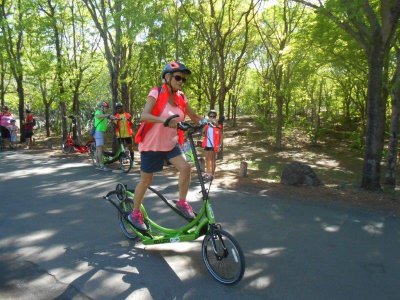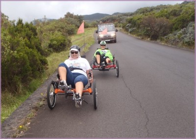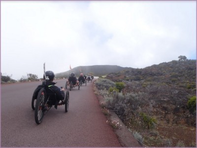| Découverte pour certains et addiction pour certaines (leur 4ème fois) le vélo couché au volcan a beaucoup plu ... Pédalage en position relax du pas des sables jusqu'à Bourg-Murat ! | |