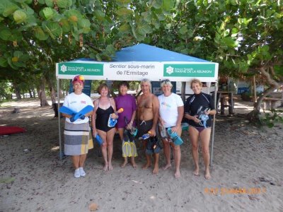 | Découverte gratuite (accompagnée d'un guide) de la beauté et la fragilité du récif corallien, des paysages sous-marins caractéristiques du récif de la Réunion, sur un parcours balisé, équipés de palmes, masque et tuba. | |