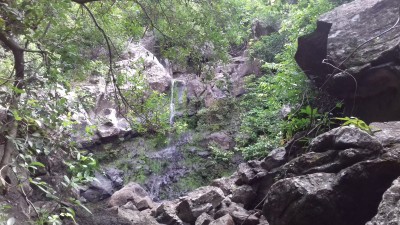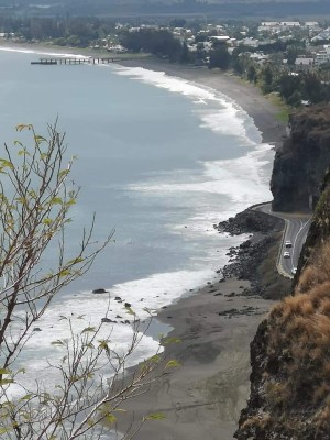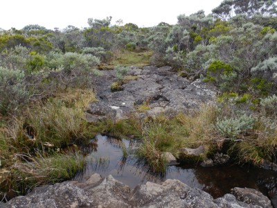 | Le bassin Gabriel le 8 février jour de reconnaissance de randonnée (avec un filet d'eau) | Le Port vue du point culminant de la randonnée |