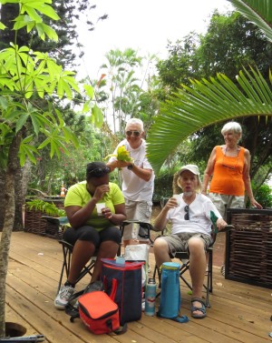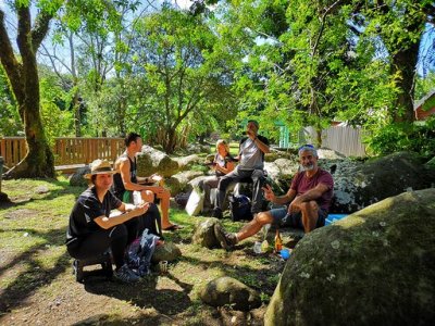 | 20 personnes étaient au rendez-vous à la Trinité et ont voituré pour se rendre près de l'aire de pique-nique de St François guidés par Micheline ils ont marché environ 1 heure et demi avant de reprendre les voitures pour déjeuner un peu plus haut chemin de l'évêché chez une famille créole. Le jus de goyavier maison à l'apéro suivi du carry poulet et brèdes chouchou et avec un flan coco au dessert ! Bref tout le monde était ravi de cette petite sortie dominicale ! | |