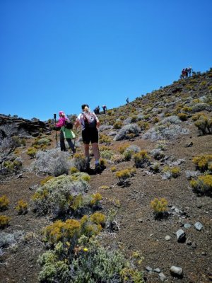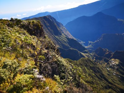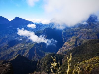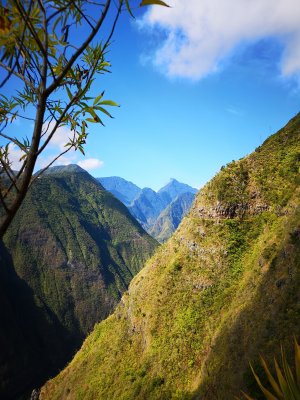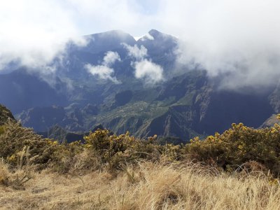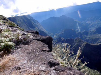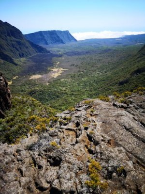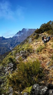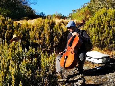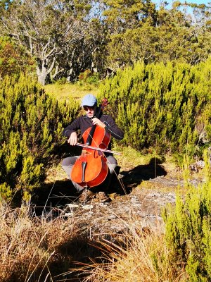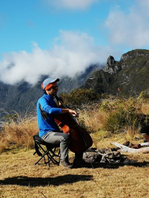 édition ! 14 personnes étaient au rendez-vous au Maïdo pour une petite randonnée guidée par Alexis Vincent accompagnateur en montagne et Christophe Boney musicien voyageur et alpiniste ... Moments magiques du style panorama sur le cirque de Mafate, 3 parapentes passent au dessus de nos têtes, un tec-tec se pose près de nous pendant qu'Alexis interprète un prélude de Bach au violoncelle ! . |