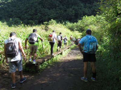 à mi parcours cueillette des goyaviers et des jamroses ! (6 participants) . |