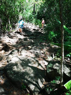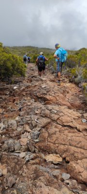 forestière des tamarins . La partie descente un peu difficile (parce que technique à cause du terrain caillouteux) . Bref 4 heures de marche effective , belle journée ensoleillée bo,nne température et bonne ambiance ! Pour mémoire un rdv à 8 heures à la luge, un début de randonnée à 9h, une fin de randonnée à 14h15 et le temps de récupérer les véhicules tout le monde était du côté de St Paul vers 16 heures ! . |