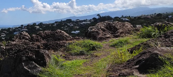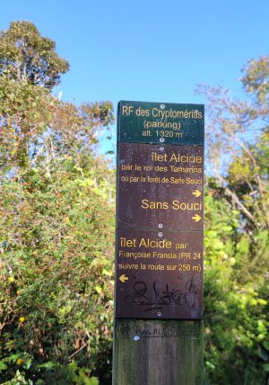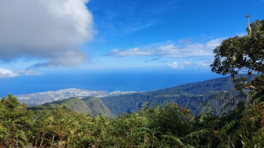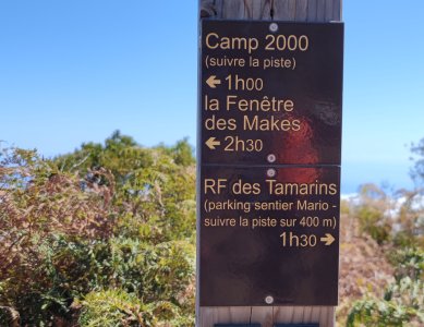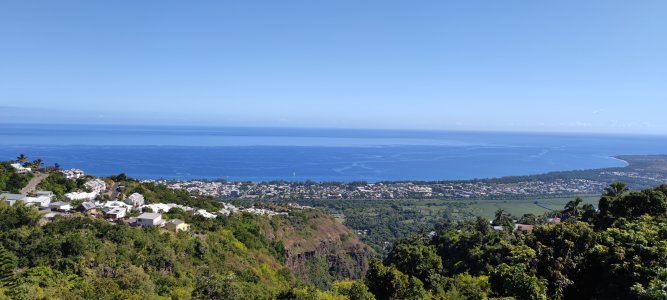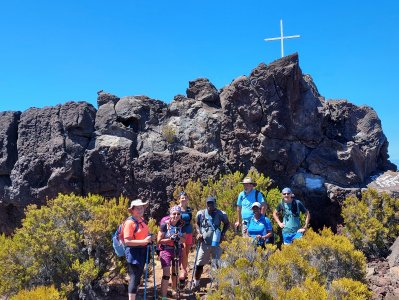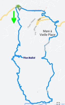 | 14 marcheurs au rdv à 9h00 sur le parking indiquant col Carozin à Mare à vieille place ... Et il suffit de traverser la route et de suivre les indications Piton Maillot ! C'était parti pour une boucle de presque 9 kms d'une durée d'environ 5h30 pour 3h30 de marche effective avec dans la première partie le panorama à 360° au piton Maillot ! Bonne ambiance conviviale comme d'habitude ... Seul bémol l'été s'est installé il aurait fallu partir une heure plus tôt ! | |