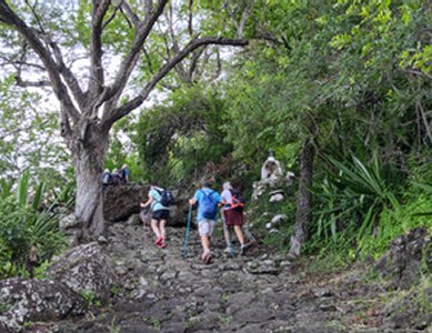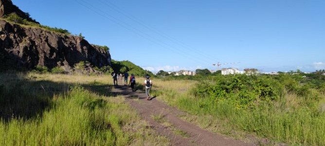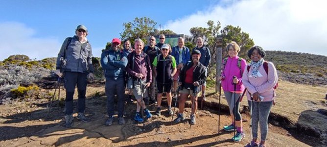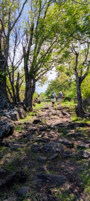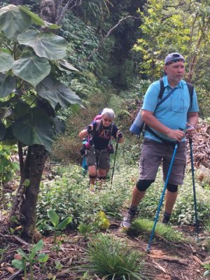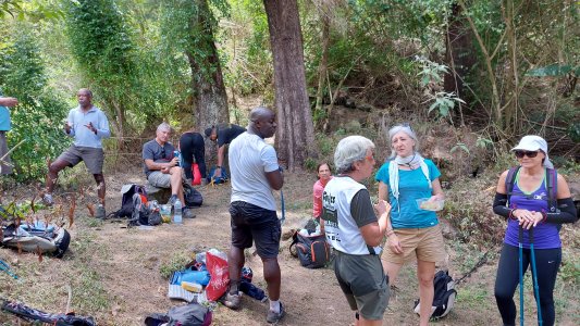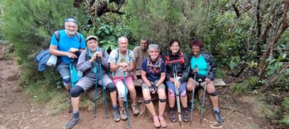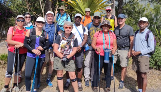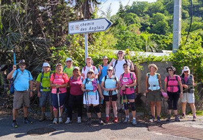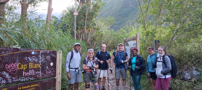 | 15 personnes au départ avec un temps de pré-cyclone et un soleil bien présent. Très vite la chaleur a eu raison de 2 d’entre nous surtout avec dès le départ une montée sur les pavés du sentier des anglais une peu raide. Après une petite pose pour admirer le point de vue sur la mer d’un côté et la montagne de l’autre, redescente et arrivée à la Grande Chaloupe où nous attendaient Cathy, Valérie et Eric avec des rafraichissements . Après le déjeuner devant la gare, 7 d’entre nous avons entamé le retour et après 1/2h de montée Philippe et Zebulett ont fait demi tour, faute de genoux résitants……pour attendre tranquillement leur chauffeur. 5 courageux ont terminé la rando, bien contents d’être de retour à la Possession après 16kms de marche au total depuis le matin. Tout le monde est rentré avant la mise en alerte orange dûe à l’approche du cyclone. | |