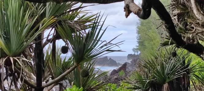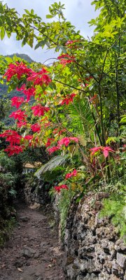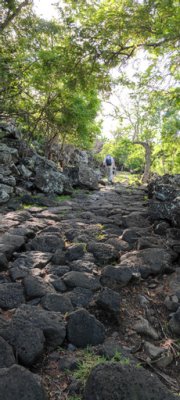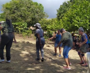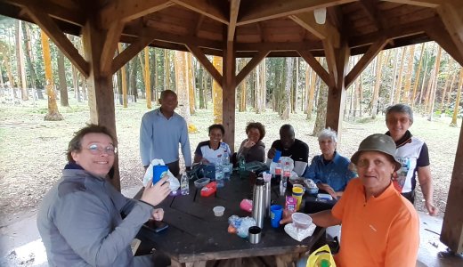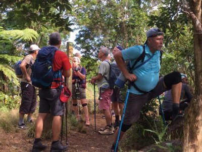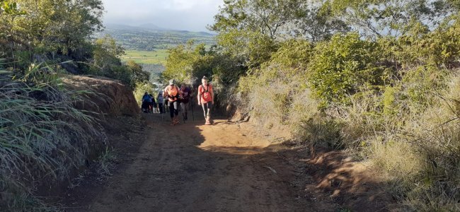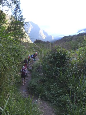 | 15 marcheurs au départ et 19 personnes au repas ! Randonnée de 11 kilomètres sur les sentiers pavés de St Paul (sentier charette de bois rouge, sentier la source et enfin sentier Bellemène ou Lougnon). La pause déjeuner avec l'association ASCLB (sportive et culturelle comme la nôtre ! ) a été très appréciée : carys poulet et canard rougail morue mais aussi jus de tamarins ou jus de citrons maison sans oublier le gâteau patate, le rhum arrangé jamblon et l'animation maloya. Moment convivial bien mérité après 3h30 de marche à rythme tranquille (permettant la cueillette des prunes malgaches ou des goyaves ou l'admiration du jabot-dinde nom local de l'aristoloche) avec un dénivelé de 400 mètres; Le seul bémol de la journée fut le petit grain de pluie pour retrouver notre véhicule. |