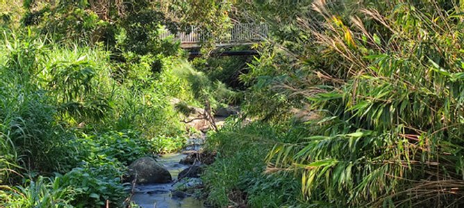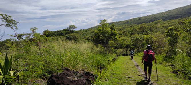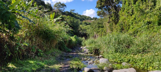 | 8 personnes départ de l'église de La Possession à 7h30 retour vers 10h45 ...Distance 6,2 km; Temps effectif de marche 2h20 ! Comme d'habitude dans la bonne humeur et avec le bassin Gabriel (ou bassin Cheval) abondant après les dernières pluies ! |