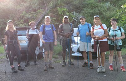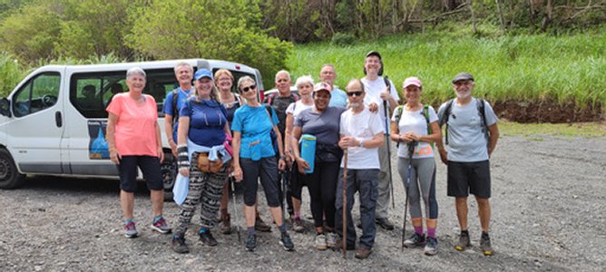 | 8 personnes départ grande chaloupe à 8h00 retour vers 13h00 ...Distance 9,6 km Temps effectif de marche 3h20 ! Comme d'habitude dans la bonne humeur et avec une pause la boutique et une pause déjeuner bien conviviales . | |