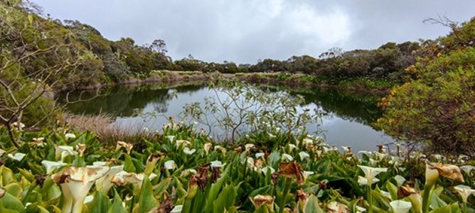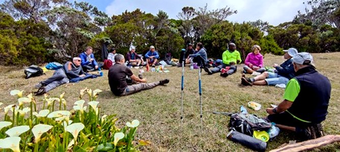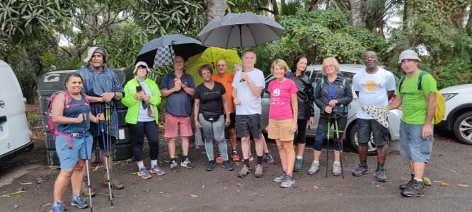 | 12 marcheurs matinaux étaient au rendez-vous au piton Textor à 8h30 ... Petite erreur d'aiguillage au départ en pensant démarrer du parking plus bas ... mais juste pour l'échauffement par 12 degrés et une petite bruine ventée et le groupe s'est rendu au Piton de l'eau pour un pique-nique convivial et ensoleillé avec les arums en fleurs. Retour aux véhicules vers 15h30 ( avec 5h10 de marche effective) et toujours dans la bonne humeur ! |